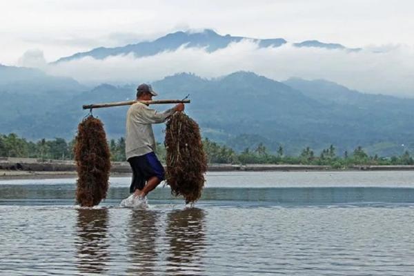 Nelayan mengangkut benih rumput laut. (Foto dok. Humas Ditjen PBD KKP)