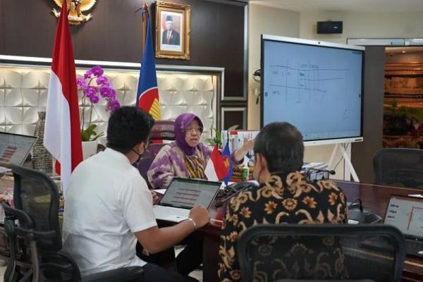 Menteri Sosial Tri Rismaharini dalam Pertemuan Tingkat Menteri ASEAN ke-11 tentang Kesejahteraan Sosial dan Pembangunan (11th AMMSWD) secara virtual. (Foto: Humas Kemensos)