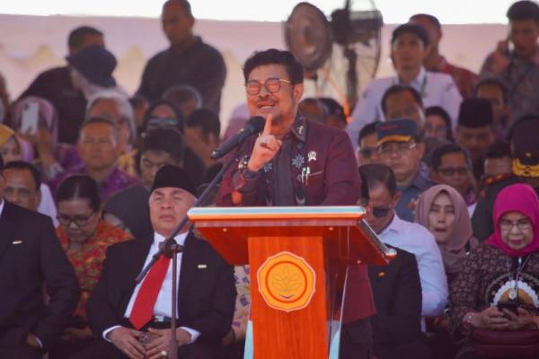 Menteri Pertanian Syahrul Yasin Limpo (Mentan SYL) pada pembukaan Penas Tani Ke-XVI yang dipusatkan di Lapangan Udara Sutan Sjahrir, Kota Padang, Sumatera Barat 10 hingga 15 Juni 2023.
