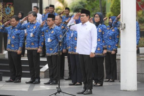 Menteri Desa Pembangunan Daerah Tertinggal dan Transmigrasi (Mendes PDTT), Abdul Halim Iskandar (Gus Halim) saat Peringatan Sumpah Pemuda ke-95 di Lapangan Utama Kemendes PDTT, Jakarta, Senin (30/10/2023). (Foto: Humas Kemendes PDTT)
