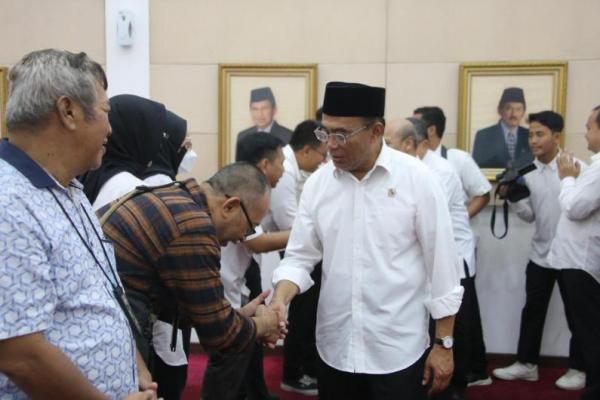 Menko PMK Muhadjir Effendy dalam kegiatan Halalbihalal sekaligus Apel Pagi, yang diikuti oleh pegawai Kemenko PMK, pada Senin (22/4/2024). (Foto: Kemenko PMK)