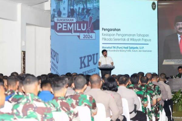 INDONESIAINFO.ID - Menteri Koordinator BIdang Politik, Hukum dan Keamanan (Menko Polhukam), Hadi Tjahjanto mengingatkan seluruh prajurit TNI dan Polri untuk terus bersinergi dalam menjaga keamanan dan kedamaian di Papua, khususnya dalam pelaksanaan Pilkada serentak 2024.