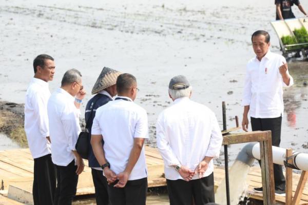 Presiden Jokowi memuji sistem irigasi dan saluran air sekunder maupun tersier persawahan di Provinsi Lampung dalam kondisi baik sehingga memungkinan para petani untuk bertanam lebih dari satu kali.