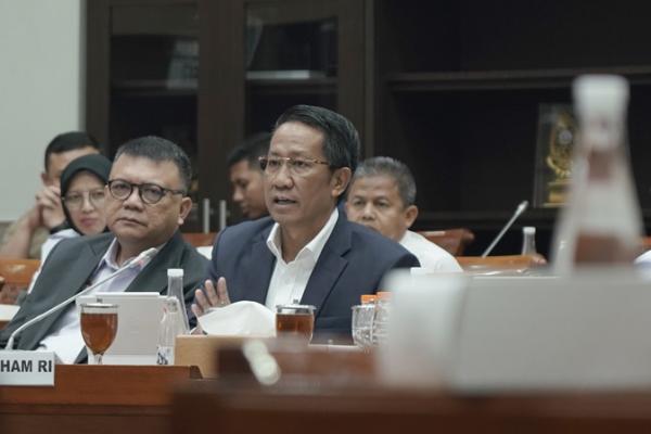 Menteri Hukum dan Hak Asasi Manusia (Menkumham) Supratman Andi Agtas dalam dalam rapat kerja dengan Komisi III DPR RI (Foto: Dok. Kemenkuham)