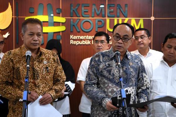 Menteri Koperasi (Menkop) Budi Arie Setiadi memberi keterangan pers terkait langkah antisipasi merespons kisruh Koperasi Susu di Boyolali dan Pasuruan (foto: Kemenkopukm)