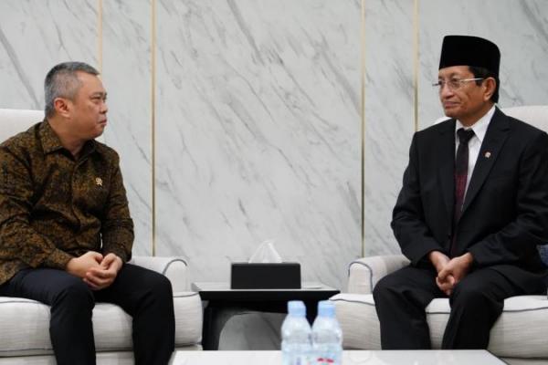 Menhub Dudy Puwagandhy dan Menag Nasaruddin Umar membahas wacana Work From Anywhere (WFA) atau bekerja dari mana saja menjelang libur Nyepi dan Idulfitri 2025 (Foto: Kemenag)