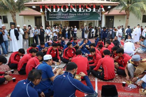 Indonesiainfo.id - Konsulat Jenderal Republik Indonesia (KJRI) di Jeddah menggelar perayaan Hari Raya Idulfitri 1446 H bersama Tim Nasional Sepak Bola U-17 Indonesia yang sedang berada di Arab Saudi untuk bertanding pada ajang Piala Asia.