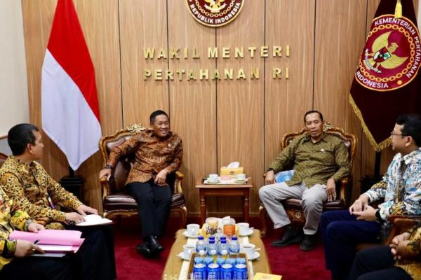 Wamenhan Donny Ermawan Taufanto menerima kunjungan Wamendiktisaintek Fauzan, di kantor Kementerian Pertahanan (Foto: kemhan)