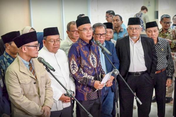 Ketua Komisi VIII DPR RI, Marwan Dasopang memberi keterangan pers usai Rapat Kerja dengan Kementerian Haji dan Umroh RI terkait Biaya Penyelenggaraan Ibadah Haji (BPIH) tahun 2026, di Kompleks Parlemen, Jakarta, Rabu (Foto: DPR)