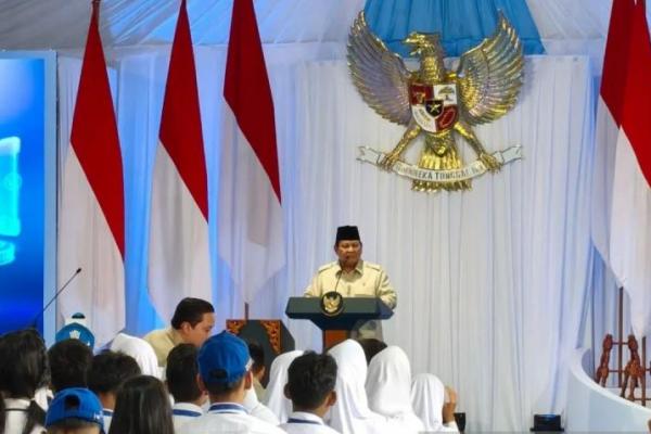 Presiden Prabowo Subianto saat agenda peluncuran Digitalisasi Pembelajaran 2025 di SMPN 4 Kota Bekasi, Jawa Barat (Foto: Antara/Andi Firdaus)